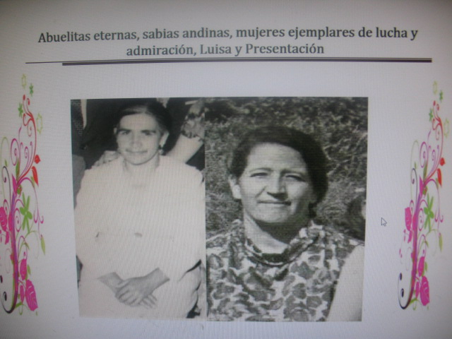 Recuerdo nítidamente el pequeño jardín de hortalizas de una de ellas, con sus flores de campana en la puerta, en ambas casas se construyeron hornos de barro donde horneaban el pancito serrano tan rico que provocaban siempre con el cafecito a punto, o el chocolate traído del Cuzco calientito, con canela, y clavo de olor, evocando sus lejanos y siempre recordados pueblos en las alturas andinas de Abancay. Ellas fueron el alma de las familias, fueron el ente ejecutor que movió montañas, movilizaron fuerzas del alma y el corazón, fueron el hilo conductor de un recorrido de memorias, paisajes, durezas y bondades, mis abuelitas vivirán siempre en el recuerdo más sublime donde la memoria se confunde con el sentimiento de nieta, y las recuerda con profundo cariño y admiración.
